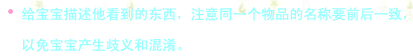 比如,一邊給寶寶洗澡,一邊描述:“寶寶洗澡啦,給寶寶脫衣服,寶寶拍水真開心。”