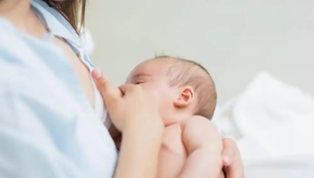 感覺寶寶已經(jīng)吃差不多了,寶媽可以先將寶寶松開,然后用手指輕點(diǎn)寶寶的小下巴。