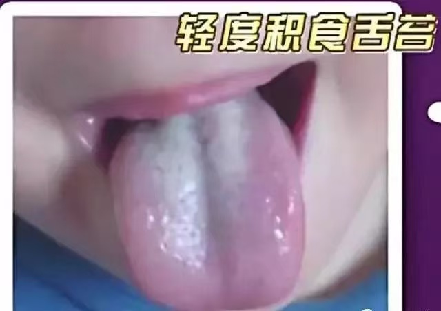但是如果小寶寶積食了,舌苔就會(huì)反應(yīng)出來(lái)問題。如下圖: